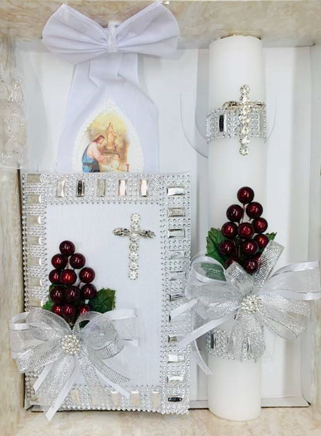 This 4-pc Deluxe Candle Gift Set for Boy it's a must have item. The package also includes a candle, prayer book, and rosary. It makes a great gift for your handsome boy.